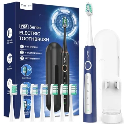 [Thorough Cleaning for Healthier Teeth] The electric toothbrush is designed with U-shaped bristles that better conform to the contours of your teeth and gums, effectively delivering toothpaste to hard-to-reach areas. With 50,000 vibrations per minute, this toothbrush ensures a thorough clean.This sonic toothbrush helps you maintain fresh breath, promoting not only the health of your mouth but also boosting your confidence with a radiant smile. It is also suitable for adults and children [Great Value for Money] 8 replacement toothbrush heads feature bristles in three distinct colors, making it easy to distinguish each head when used by different family members. It is recommended to replace the toothbrush head every 3 months, giving you a total of 24 months of use from the included brush heads. This eliminates the need to frequently purchase new brush heads [90-day Long-lasting Battery Life for Worry-free Travel] Enjoy extended use with minimal recharging thanks to a quick 3.5-hour charge time that provides up to 90 days of regular use. This reduces the need for frequent charging, making electric toothbrush especially convenient for both daily routines and long trips [5 Modes Clean Modes ] YTEATH PRO sonic electric toothbrush cater to different dental needs, from routine cleaning to sensitive gum care. The Sensitive mode is particularly suitable for users with sensitive teeth and for those using a sonic toothbrush for the first time. White mode help to remove surface stains for a whiter smile [2 Minute Scientific Brushing Time] The 2-minute timer on the electric toothbrush is designed according to the dentist-recommended brushing time. It helps you thoroughly clean your teeth and develop proper brushing habits. The 30-second change indicator reminds the user to change the brushing area to ensure that each quadrant is adequately cleaned