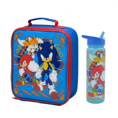 Sonic The Hedgehog Lunch Bag Set + 600ml Water Bottle Insulated Durable, Spacious & Stylish Lightweight Easy to Carry for School, Preschools Picnics