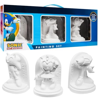 Unleash Creativity - Kids and teens can bring their favourite Sonic characters to life with this cool set. The set includes 3 plaster figures, paint, and brushes for endless decorating fun Complete Painting Kit - This kids paint kit includes 3 plaster character figures, 3 paintbrushes, and 3 sets of 4 paint pots. Everything needed for painting and personalising their own designs Cool Bedroom Decor - This craft kits for kids means they can create personalised Sonic decorations to brighten up their room, letting them design unique decor that reflects their own style Official Sonic the Hedgehog Merchandise - This Sonic art & craft kit is officially licensed Sonic merchandise. Ideal for fans who want to create their own Sonic-themed decorations Sonic Gifts for Boys or Teens - Perfect for Sonic fans! This Sonic kids painting set makes an amazing gift for Christmas, birthdays, or special occasions and combines creativity and fun