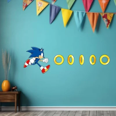 Sonic The Hedgehog Wall Sticker Running for Rings Art (60cm Width x 30cm Height)