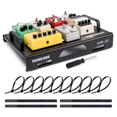 SONICAKE Mini Guitar Pedal Board 14.10" x 5.50" x1.20" Portable Aluminum Alloy Pedalboard (Black M)