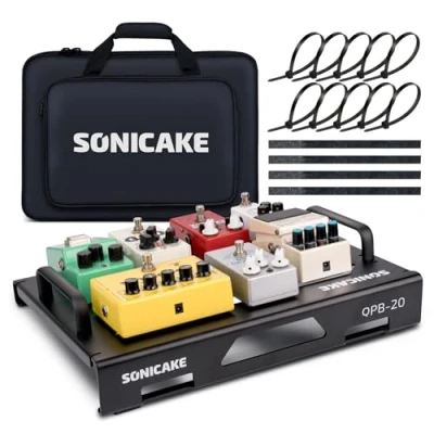 SONICAKE Mini Guitar Pedal Board 14.10" x 5.50" x1.20" Portable Aluminum Alloy Pedalboard (Black M+Bag)