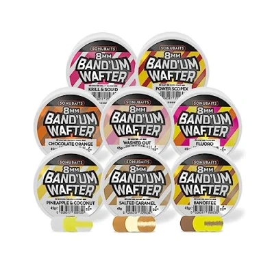 Sonubaits Band’um Wafters - Available in a variety of flavors! - Great wafters - Diameter: 6mm - Deviating shape - Floats on the weight of the hook - Easy for the fish to pick up - Very attractive - Versatile to use! These Band’um wafters from Sonubaits are versatile to use when fishing a variety of whitefish and F1 carp. The wafter floats on the weight of the hook and this makes your hookbait stand out just a bit more. In addition, a fish can pick up the wafter very easily because the weight is very low. Perfect for use with a method feeder, pellet waggler or in combination with a bait band.