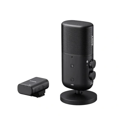 DESIGNED FOR STREAMING & PODCASTING: Captures high-fidelity voice without delay. Includes a pop guard, adjustable stand, and screw mount options. Connects directly to your PC via USB or to a camera receiver for immediate storytelling and content creation. CLEAR SOUND RECORDING ALWAYS: Equipped with Sony’s Digital Audio Technology, featuring Noise Cut for ambient noise reduction and adjustable sound directionality, delivering professional-quality audio in any studio or streaming environment. STREAM FROM ANYWHERE: Receiver mounts on your camera or connects via USB. Bluetooth link enables wireless use. Offers 3-hour battery life, 150m wireless range, and low audio latency, providing maximum flexibility for live streaming and podcasting. EASE OF USE OUT OF THE BOX: No third-party apps required. Monitor audio directly with dedicated lamps, adjust headphone and audio levels, and control directionality and Noise Cut via built-in switches. COMPACT & STYLISH DESIGN: Lightweight and discreet for live creators. Elegant black matte finish integrates seamlessly into any studio, podcast, or live streaming setup.