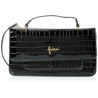 elegate handbag Adjustable and removable strap Handle Gold-coloured lettering on the flap Interior zip pocket