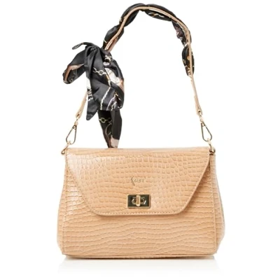 Feminine shoulder bag Faux leather with reptile embossing Spacious inner compartment Decorative cloth for removal Gold accents