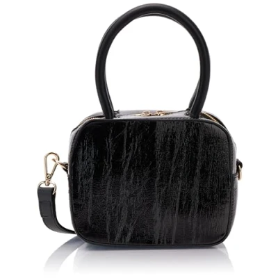 Trendy handbag Glossy textured finish Short handle Detachable and adjustable shoulder strap Main compartment with zip