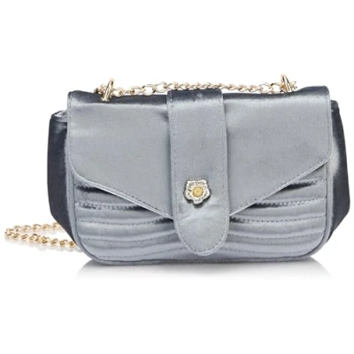 Velvet evening bag With decorative flower on the flap With magnetic closure Gold Link Chain Textile interior