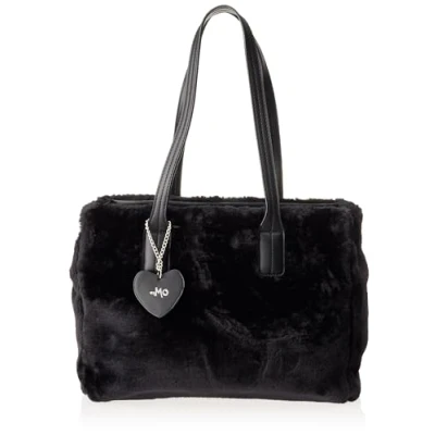 Faux Fur Bag Zip closure Logo heart pendant Interior zip pocket Medium length handle