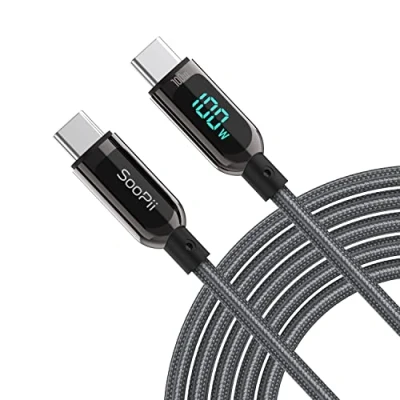 【Smart Power Display】Real-time charging power visible, show charging status and signify high power process. Built-in smart chips monitoring the charging power and adjusting current and voltage automatically, avoiding damage to the battery in case of unstable current.(Please note display module just show charging power, it neither increase nor decrease charging current) 【Support 100W Fast Charging】Supports up to 100W(20V 5A) charging speed, with a max output of 100W charger, SooPii USB C to USB C cable can charge anything Type-C devices from phones to laptops. Pair with a 100W USB-C Power Delivery charger to power up a MacBook Pro 16ʺ in 2 hours. (NOTE: This is a data transfer and USB 2.0 version charging cable, and does not support video output.) 【Ultimate Durability】 Based on 36,000+ bends strict tests, with special zinc alloy design and wearing rugged nylon braided exterior, SooPii Charging cable serve you longer and stronger. 【Wide Compatibility】Works effortlessly with any USB-C device including phones, tablets, and laptops. Compatible with MacBook Pro 13'', MacBook Pro 15'', MacBook Air 2018, iPad Air 2020 10.9” (4th generation), iPad Pro 12.9''/11'',Galaxy S21/ S21 Ultra/ S20/ S20+/ S20 Ultra/ Note 10/ Note 10 Plus/ , Google Pixel 2/3/3a/4 XL, Switch/Switch Lite and more. ( Note: Please use a 100W USB-C wall charger to achieve fast charging. ) 【What you Get in Box】1 x SooPii S10CC PD Charging Cable and SooPii Worry-free 24-month Warranty