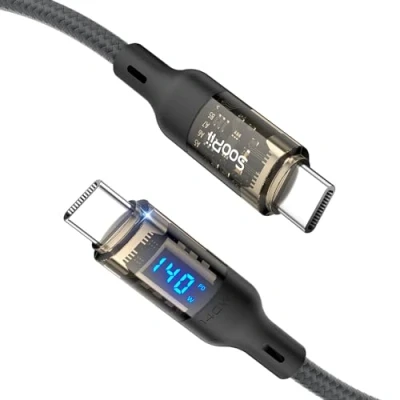 Outstanding Charging Output & Data Transfer: This SooPii USB C to USB C cable supports 140W fast charging and 480Mbps data transmission speed. It also supports Super Fast Charging for Galaxy S23/S22 while using an original charger. All for creating a satisfying charging experience that beyond expectations to you. (Note: It does not support video output.) Intelligent Power Display: With the popular LED display design, it shows the real time wattage in charging. It signifies a changing process of wattage and helps you monitoring the charging status of your device anytime. Unique Transparent Shell & Premium Durability: The special transparent shell, durable PVC material and rugged nylon braided exterior are for extending its life span. Based on 36,000+ bends strict tests, its quality is guaranteed undoubtedly. Advanced E-marker Technology: The upgraded smart E-marker chip can automatically identify your device to improve data transfer and charging efficiency, avoiding battery damage or overcharging problems by controlling voltage and current. You are given a safer, more reliable and efficient charging. One for all: Works effortlessly with any USB C devices including phones, tablets and laptops. Thoughtful After-sales Service: You get our worry-free 24 months warranty. Any questions please feel free to contact us and we’ll always be there for you.