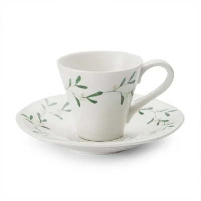 The Sophie Conran Set of 2 Espresso Cups & Saucers welcomes beauty and grace to your festive tablescape, perfect for enjoying an energy-boosting espresso. Its matching design of blossoming mistletoe exudes a rustic charm accompanied with its unique, textured shape, and a generous-sized handle sits comfortably in the hand.Made from porcelain, this set of 2 espresso cups & saucers is ideal for modern living, serving families and individuals with durability and functionality in mind, without compromising on style.Part of the Sophie Conran Mistletoe collection. Pair with other pieces from the Sophie Conran Mistletoe collection for a harmonising suite, from tableware to serveware.This Sophie Conran Set of 2 Espresso Cups & Saucers is dishwasher and microwave safe.Made from Porcelain.Saucer Dimensions: 2.6(H) x 13.9(W) x 13.9(D) cm. Cup Dimensions: 6.3(H) x 9.1(W) x 7.2(D) cm.Capacity: 80ml.