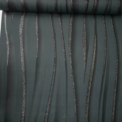 General description Add a touch of sophistication to your walls with this trendy Glitter Textured Wave Stripe Charcoal Black Wallpaper. Featuring a wave stripe design complemented by bold silver glitter in a toned black color scheme, this wallpaper is perfect for full room coverage or as a feature wall. The stunning design adds a fantastic effect to any space. Technical specifications Dimensions: 0.53m x 10m Pattern repeat: 64cm Material: Textured Blown Vinyl Washability: Extra Washable Application: Paste the Wall Peelable: Yes Lightfastness: Good Other information Sample available Free match All rolls are perfect, sealed, and sent from the same batch