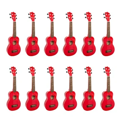 Soprano ukuleles designed for the classroom 12 pack of ukuleles with carry cases Tie bar bridge for easy string replacement Geared machine heads for accurate tuning Nylon strings – gentle on the fingertips