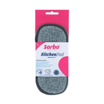 Use the Sorbo Kitchen Pad for all those cleaning jobs around the kitchen. This versatile kitchen sponge features a non-scratch scrub side and an absorbent soft side.Hard wearing and long lasting, the Sorbo Kitchen Pad produces sparkling results.