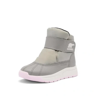 WATERPROOF WINTER BOOTS: Youth unisex boots with waterproof nylon upper, 200g insulation, and rugged, stylish design for trail or city COMFORT & EASY FIT: Removable plush EVA footbed, microfleece top-cover, Velcro strap closure, and nylon heel pull tab for easy on/off HOW TO ADVENTURE IN STYLE: Ideal for hiking, rain, work, or outdoor; Wear for winter play, city outings, or outdoor fun—sleek build and durable construction DURABLE MATERIALS & CARE: Waterproof bootie design, moulded rubber outsole, robust insulation; wipe clean, air dry CONTENTS: 1x Sorel Children's Whitney III Strap Mid WP Boots, youth unisex little, Size: 12 UK, Colour: Dove, Pink Dawn