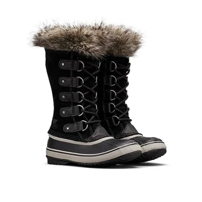 Joan of Arctic Collection: A winter style icon, this boot is a Sorel fan favourite Winter Boots Women: Made of waterproof suede upper with faux fur cuff for snowy errand running Quality Outsole: Features handcrafted waterproof vulcanized rubber shell with herringbone outsole Insole Design: Made of removable 6 mm washable recycled felt inner boot for added comfort Comfortable: The 3/4-inch heel and 1/2-inch platform provide all-day wear