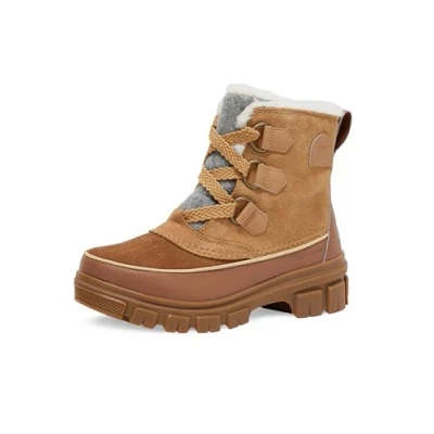 AmazonWINTER-READY WEATHERPROOF BOOTS: Women’s boots with waterproof suede upper, PU leather mudguard, and OutDry technology for snow and rain COZY & ADJUSTABLE COMFORT: Removable plush EVA footbed, microfleece lining, faux fur trim, and 200g insulation for warmth and style HOW TO EMBRACE WINTER: Wear for city strolls or trail adventures—bold faux fur collar and stylish design for versatile winter wear DURABLE MATERIALS & CARE: Sculpted rubber outsole, reliable grip, canvas or felt tongue; wipe clean, air dry CONTENTS: 1x Sorel Torino V WP Boots, Women's, Size: 9 UK, Colour: Tawny Buff, Velvet Tan