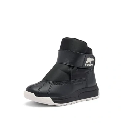 WEATHERPROOF TODDLER BOOTS: Unisex toddler boots with waterproof nylon upper, PU-coated overlays, and cosy 200g insulation for all-weather play COMFORT & EASY FIT: Removable plush EVA footbed, microfleece lining, Velcro strap closure, and ankle support for confident movement HOW TO ADVENTURE IN STYLE: How to: Wear for hiking, city outings, or winter fun—easy on/off with heel pull tab and secure fit DURABLE MATERIALS & CARE: Crafted rubber outsole, advanced grip, waterproof membranes; wipe clean, air dry CONTENTS: 1x Sorel Toddler Whitney III Strap Mid WP Boots, Youth Unisex Toddler, Size: 5 UK, Colour: Black, Sea Salt