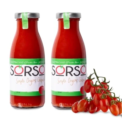 READY-TO-DRINK CONVENIENCE: SORSO Gazpacho is a premium chilled soup made with natural ingredients. No prep needed - just shake, pour, and enjoy cold or hot. Perfect for busy days, quick meals, or healthy snacks on the go. 100% NATURAL INGREDIENTS: Each bottle contains 20 vine-ripened tomatoes, 1 sweet red pepper, lemon juice, and pink salt. No additives or preservatives. Our products are freshly prepared so will be delivered to you perfectly chilled. Keep chilled and consume within 20 days once opened, or freeze for up to 3 months. VEGAN, KETO FRIENDLY & GLUTEN-FREE: SORSO is completely plant-based, paleo, dairy-free, grain and soy-free, plus gluten-free, as well as being keto-friendly. Packed with fibre, antioxidants, and vitamins A, C, and E - it's healthy, rich and oh so satisfying. PREMIUM HOMEMADE RECIPE: Handcrafted in small batches in London, using a traditional Spanish recipe. SORSO delivers a rich, smooth texture and bold Mediterranean flavour you can taste in every sip. MULTI-USE & FAMILY FRIENDLY: Ideal for all the family, to serve to friends when you want to impress. Also great as a base for Bloody Marys, broths, or a vibrant pasta sauce, our Gazpacho is like no other.