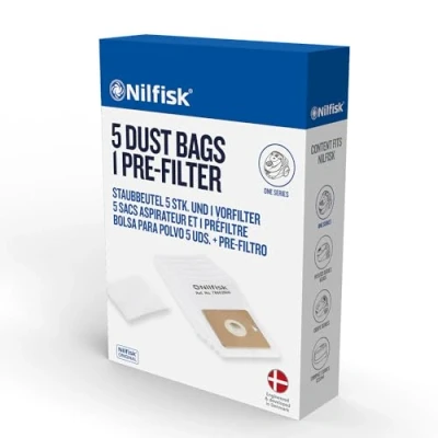 AmazonDUST BAGS: Made of high-quality material. Robust design. A replaceable pre-filter is included to help your vacuum cleaner reach its full potential. ORIGINAL: Genuine original replacement spare part COMPATIBLE WITH: One, Compact, Coupé, Go, Force 60, Force 65, Force 122 and Force 144 NILFISK STORE: Discover more accessories by visiting our Amazon brand store. Reference number 78602600 NILFISK: For over a 100 years, Nilfisk has developed premium quality cleaning solutions, constantly innovating to create durable and highly effective products., Weight: 0.330693393 pounds, Manufacturer: Nilfisk