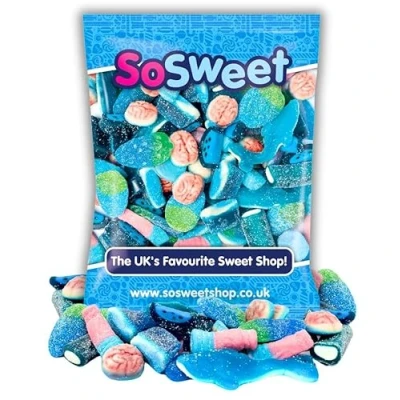 Vibrant Blue-Themed Selection: A bold 1kg mix of blue sweets including jelly-filled wild raspberries, giant dolphins, rocketz, and more – perfect for parties, sweet tables, or gifting Variety of Fruity Favourites: Enjoy a mouthwatering mix of chewy, juicy, and tangy blue raspberry and tutti frutti flavours – something for everyone in one colourful bag Themed for Maximum Impact: Eye-catching blue colour makes this mix ideal for gender reveals, baby showers, birthdays, or themed events Sealed Freshness & Long Shelf Life: Each bag is factory-sealed for freshness and offers a generous 12–24 month shelf life – stock up with confidence SoSweet: A trusted UK sweet brand known for quality confectionery – perfect for sharing, decorating, or snacking