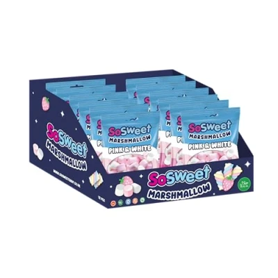SoSweet Marshmallow Pink & White 12 x 140g Bags of Soft, Fluffy Vanilla and Strawberry Flavoured Marshmallows Great for Snacking, Baking Desserts Classic Sweet Treats