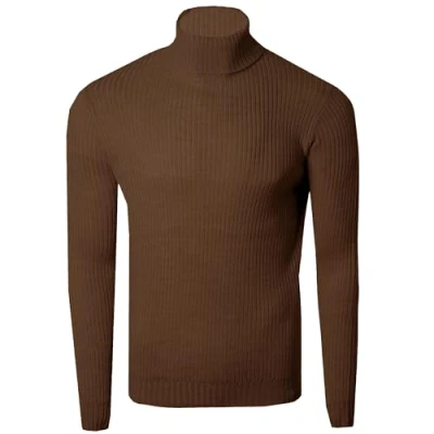 Soul Star Men's High Neck Jumper Turtle Sweatshirt Long Sleeve Sweater Solid Colour Pullover for Men, Brown, Size M