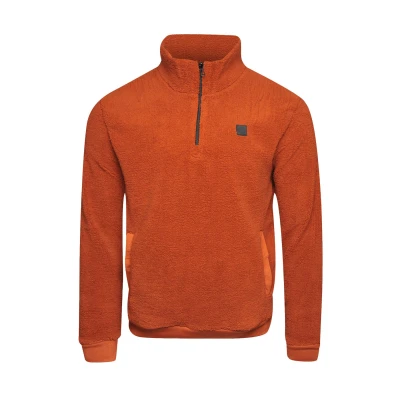 Soul Star Mens Fleece Jacket 1/4 Zip High Neck 100% Polyester Long Sleeve Jackets for Men, Orange Colour, size L