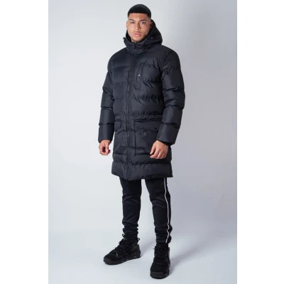 SoulStar Men's Long Coat Padded Longline Hooded Winter Warm Zip Up Cosy Jacket Black 2XL