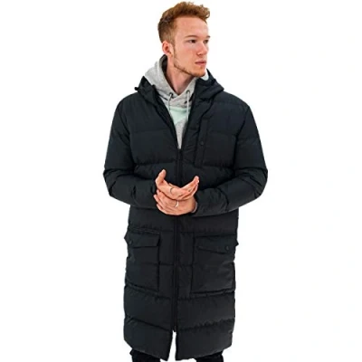 Padded Design: Has a warming effect and keeps you cozy in cold weather. Hooded Neck: Gives extra protection from wind and rain. Full Zip Closure: Zips up and down for quick wear. Long Length: Covers you from head to thigh to keep you warm. Available in Sizes S to 3XL: Fits men of different sizes well.