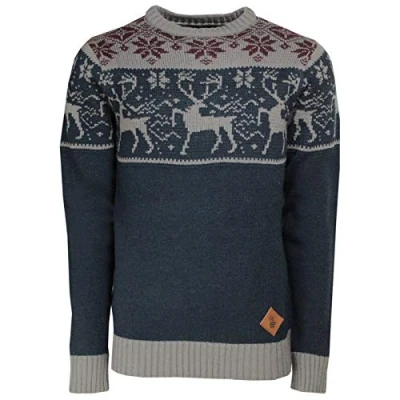SoulStar Mens Jumper Stag Deer Xmas Christmas Knitwear Crew Neck , Navy, XL