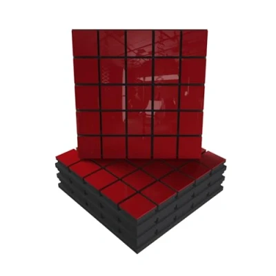 Sound Absorption Diffuse Acoustic Panel 50x50x5cm Diffusion Reflection Soundproofing Color Plates: (x4 GRID, Red gloss plastic)
