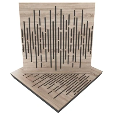 APPLICATION: These HDF acoustic panels, with sound-absorbing materials, excel in midrange and high-frequency sound reproduction. Typically wall or ceiling mounted, they're used in recording studios, home entertainment areas, music studios, corporate spaces, practice rooms, performance venues, conference areas, dining spots, hotels, residences, religious spaces, recreational venues, and broadcasting studios. ACOUSTIC IMPROVEMENT: Enhance room acoustics using our premium acoustic wooden wall panels. Offering superior sound control, they effectively absorb sound and reduce echo in any setting. Unlike traditional foam panels, our wooden acoustic solutions deliver notably improved performance. Choose from a range of unique designs and colours to complement your interior perfectly. SPECIFICATIONS: Combination of absorption and diffusion | Absorption is aimed at medium frequencies | Overall noise reduction coefficient (NRC): 0.65 | Dissipation range: 200 Hz to 5000 Hz | Material composition: Laminated high density fibreboard (HDF) and acoustic foam | Dimensions: 500x500x53 mm / (19.7x19.7x2.1 inches) | Sold in sets of 2. MOUNTING OPTIONS: Fixing with "FoamFix" brackets (included) on the vertical plane. To install the panels on the ceiling, it is recommended to use construction adhesive (so-called liquid nails). CUSTOMER SUPPORT: Our team is committed to providing a positive experience with every order. If you encounter any issues with your product, you can reach out through your Amazon account — we're always ready to assist.
