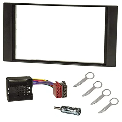 Sound way Double 2 DIN Car Radio Front Panel Frame, Quadlock ISO Connector Cable, Antenna Adapter, Release keys, compatible with Galaxy, Fiesta, Focus, C MAX, S Transit
