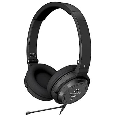 Soundmagic P23BT Portable Wireless Headphones, Long Lasting 60 Hour Battery, Folding Design, Bluetooth 5.0, SBC and aptX, 10 Minute Quick Charge, Wired Boom Mic for Gaming Business Calls Black