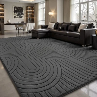 Sour Lemon Rugs living Room 120x160cm,3D Semicircular pattern Grey Area for Bedroom,Extra Large room,Machine Washable Anti Slip Short Pile Rug Kids Bedroom
