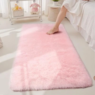 Sour Lemon Rugs Living Room 60x120cm, Pink Runner Rug for Bedroom, Washable Anti Slip Fluffy Shaggy Soft Modern Floor Carpets Mat Beside Kids Hallway