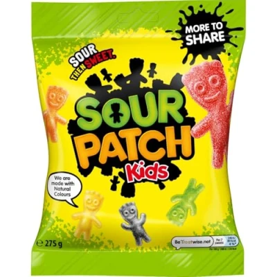 YUMMY SWEETS: Indulge in this 275g pack of original sour gummies with deliciously natural colours and sugar coating TREAT YOURSELF: Great addition to any birthday party or movie night for a delightful sweet treat, perfect for sharing with friends and family HIGH QUALITY: Made with high-quality ingredients, these traditional jelly sweets are both tasty and unique in flavour CONVENIENT SNACK: Easy to enjoy on the go, these convenient sour patch kids make a great snack anytime ON-THE-GO DELIGHT: These yummy, sour gummies are the perfect choice for those looking for a delicious and satisfying candy experience-no full stops
