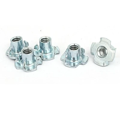 sourcingmap 1/4'' Thread Dia 10mm Height 4 Prongs Full Threaded T Nut Tee Nuts 5pcs