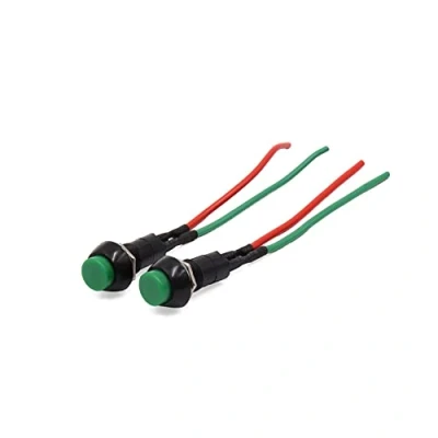 Product Name: Car Push Button Switch; Material: Plastic Package Content: 2 x Car Push Button Switch; Shell Color: Red, Green, Black Dimension: 1.8 x 3.5cm/0.7" x 1.4"(D*H); Mounting Thread Dia: 11.5mm / 0.45" Wire Length: 9.5cm/3.7"; Action Type: Momentary Voltage: DC 12-24V