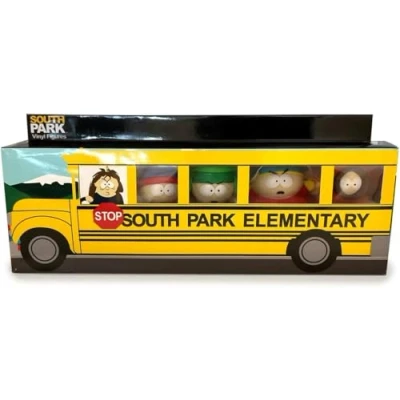 South Park 2.5" Vinyl Figure Collection School Bus Box. Includes Cartman, Stan, Kenny, Kyle and Butters