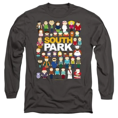 South Park Full Cast Mens Long Sleeve T Shirt, Charcoal, X Large