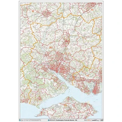 A High Quality Postcode Sector Wall Map. Showing the Entire SO Postcode Area, with Precise Boundaries and Clear Postcode Labels on a Detailed Map Background. A0 Size - 1189mm x 841mm Art quality 120 gsm paper
