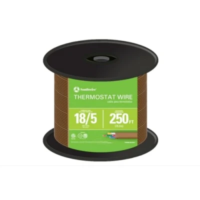 MADE IN AMERICA APPLICATIONS: Thermostat Wire is a class 2 power-limited circuit cable for use in thermostat control applications EASIER TO USE: Southwire Thermostat Wire strips easier; resists tearing; and reduces burn-through resulting in time labor and material savings DUAL PURPOSE: Thermostat wire is for use in both Heating and Air Conditioning Controls SPECIFICATIONS: 18-Gauge; 5 Conductor; Solid Copper Thermostat Wire; Class 2 Power-Limited Circuit Cable; Brown JacketMEETS SPECIFICATIONS: Sunlight Resistant; PVC Insulation; and Solid Bare Copper per UL Standard 13; RoHS Compliant; OSHA Acceptable, Weight: 1.0 Pounds, Manufacturer: Southwire