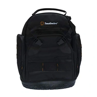 Southwire PROBAGBP Rugged Pro Tool Backpack with Heavy Duty Molded Base, Chest and Padded Shoulder Straps, 28 Pockets, 3 Zippered Pouches, 29 Loops