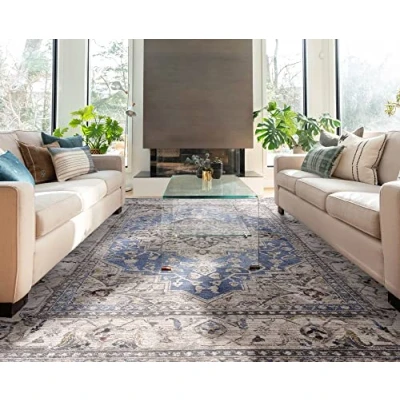 ManoManoGeneral description This Sovereign Medallion Traditional Rug is a modern interpretation of classic Persian designs, featuring muted and distressed patterns that add a sophisticated vintage look to any space. Crafted in Turkey, this rug showcases a lush sheen that is uncommon in traditional rugs, making it a stunning focal point in your home. Technical specifications Material: 100% Polyester Dimensions: 160 x 240 cm (5'3" x 7'10") Short pile design Hardwearing, stain-resistant, anti-shedding, and antistatic Usage Ideal for placement in living rooms under coffee tables, hallways for contemporary appeal, or as bedside rugs in bedrooms. Easy to clean; can be vacuumed regularly with any type of vacuum suction.