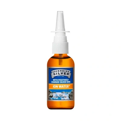 ION Water Vertical Spray can help support the immune system. It contains pure silver and purified water that helps cleanse nasal passages. • Helps to support the immune system • Can help relieve congestion • Cleanses nasal passages and eases air flow • Contains bio-active silver • Can help improve skin and clear acne • May improve speed of wound healing This bio-active silver spray provides quick sinus relief that naturally clears congestion by thinning mucus in the nose and sinuses. It cleanses nasal passages from pollutants and irritants, and eases air flow allowing for clearer breathing. The healing properties of silver also help with wound healing and can help calm inflamed skin and improve acne. Sovereign Silver contains only two ingredients: 99.999% pure silver and pharmaceutical-grade purified water. It does not contain added salts or proteins and it is packaged in non-leaching glass bottles.