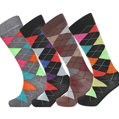 Soxy® Mens Pack of 4 Cotton Rich Knee High Long Hose Argyle Socks Assorted Colours Golfing Sports