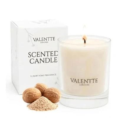 LONG-LASTING FRAGRANCE: Vallente’s scented candle is crafted with natural essential oils and premium natural soy wax to deliver a long-lasting fragrance throw that fills your home with a warm, inviting aroma. SOOTHING: Carefully blended with aromatherapy properties that will help improve your emotional health and well-being. Remarkable blend of power and captivating fragrance. WARM & SPICY: Cardamom oil is a spicy-sweet note that is uplifting and energising, while the warm and woody nutmeg oil eases stress, boosts stamina, and is good for the skin. LUXURY HOME FRAGRANCE CANDLE: Designed to look beautiful in any space, this elegant scented candle adds a warm decorative touch to living rooms, bedrooms, bathrooms, and cosy corners. Simply light the wick to enjoy an instant home fragrance, with up to 40 hours of burn time. Made without paraffin wax or synthetic fragrances, this natural soy wax candle burns cleanly and evenly while filling your home with a soothing scent. PERFECT CANDLE GIFT: Handmade in the UK and beautifully presented, this luxury scented candle gift is ideal for birthdays, Mother’s Day, housewarmings, and thoughtful gifts for her.
